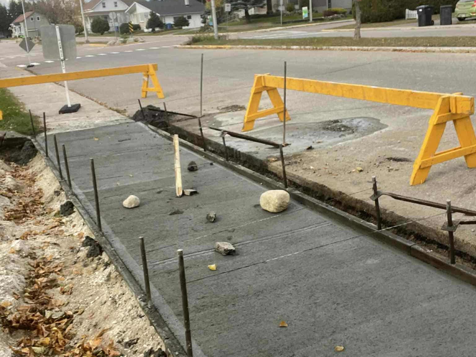 Parallèlement, la Ville de Dolbeau-Mistassini s’est exprimée sur les réseaux sociaux, le 21 octobre dernier, pour dénoncer un acte de vandalisme survenu la semaine précédente. Le béton fraîchement coulé dans le cadre de travaux de construction de trottoirs avait alors été abîmé. Une photo publiée à l’appui montre que des roches ont été projetées sur la surface, endommageant l’ouvrage en cours.