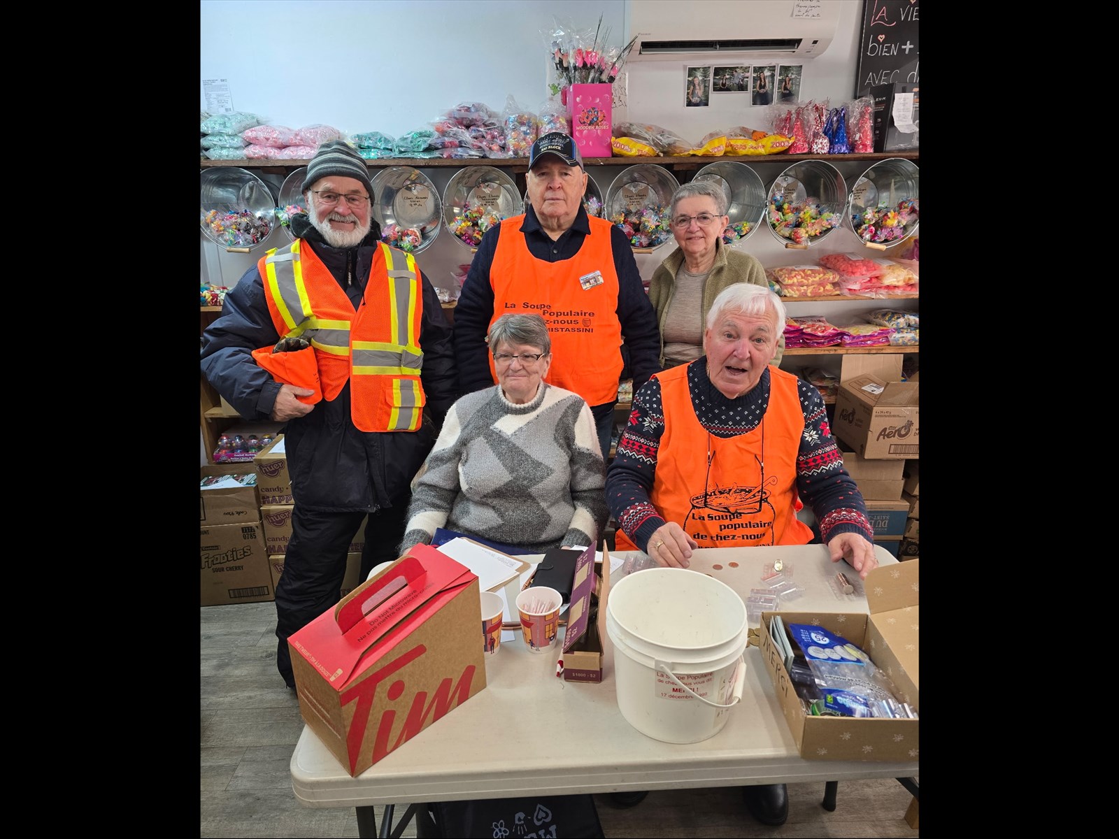 Cette dernière rappelle que la guignolée annuelle constitue la seule source de financement permettant à l’organisme de fonctionner. La Soupe populaire de chez-nous peut compter sur la contribution de 28 bénévoles dévoués qui offrent des repas chauds aux personnes les plus démunies.