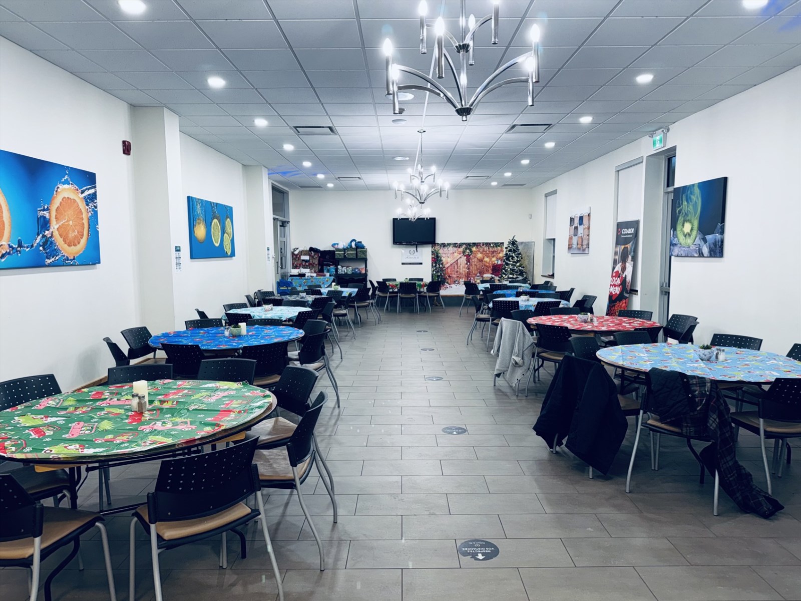 Les familles étaient attendues pour 16 h 30. Avant le repas, les enfants ont eu l’occasion d’être divertis par un lutin dans la salle des familles. Le festin a été servi dans la salle de réception, en collaboration avec les buffets Michelle et Stef. Au menu : tourtière, légumes, salades, saucisses et bûche de Noël.