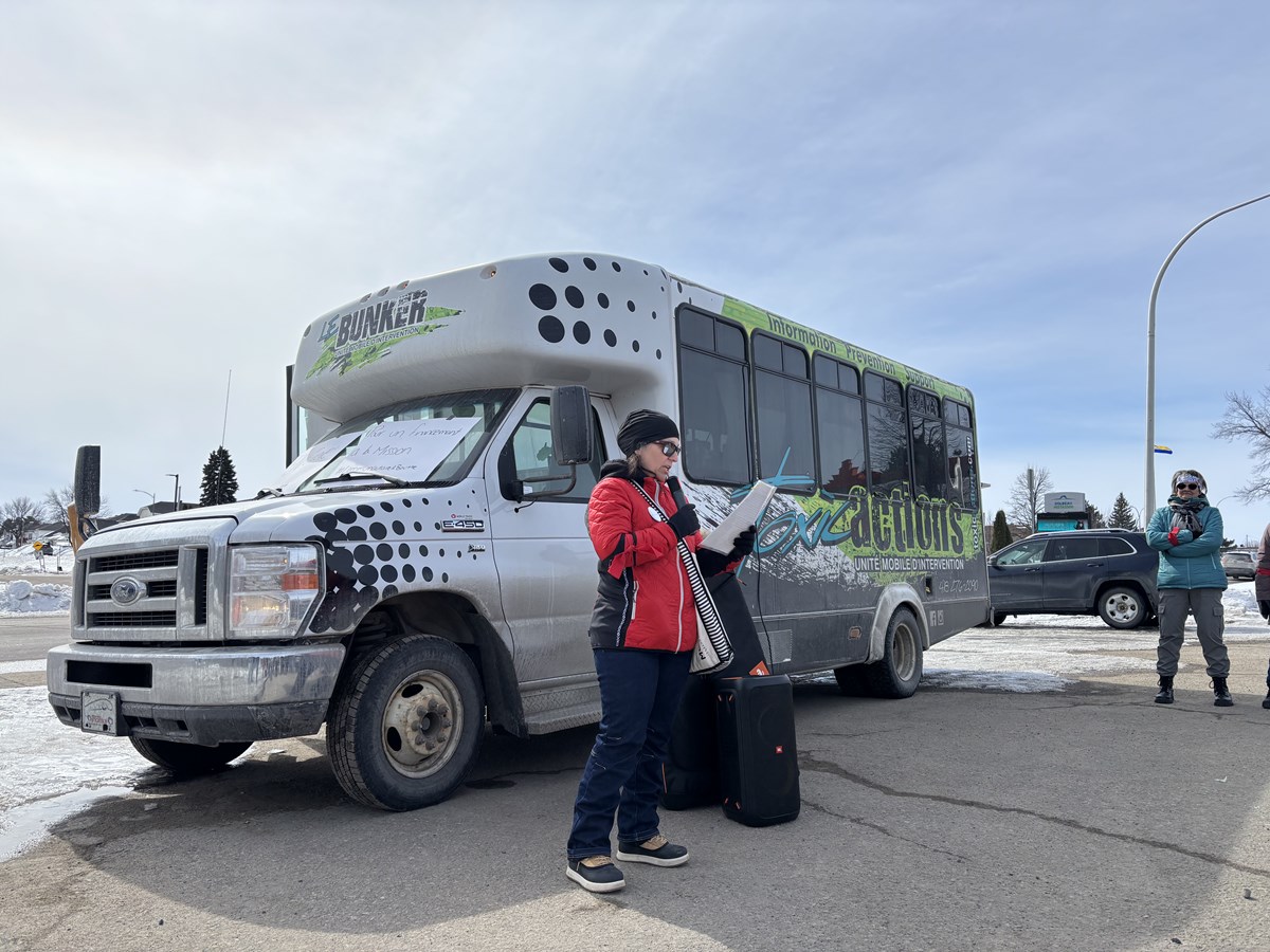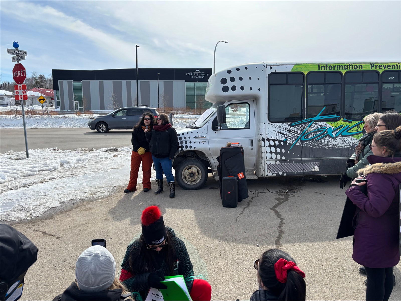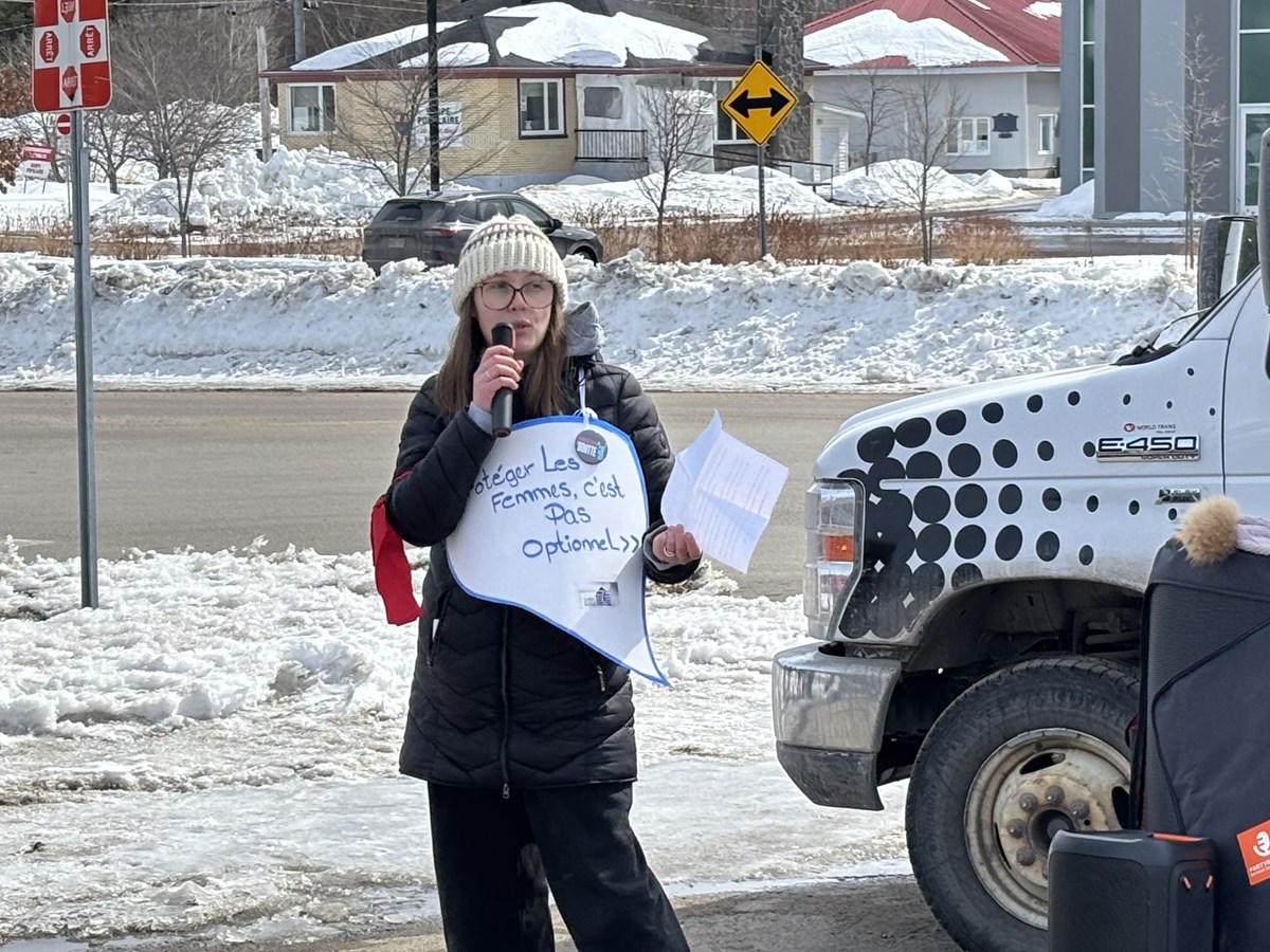 Dès 11 h 30, des représentants d’organismes et des membres de la communauté ont pris la parole dans le stationnement de la bibliothèque du secteur Dolbeau afin d’exprimer leur réalité.