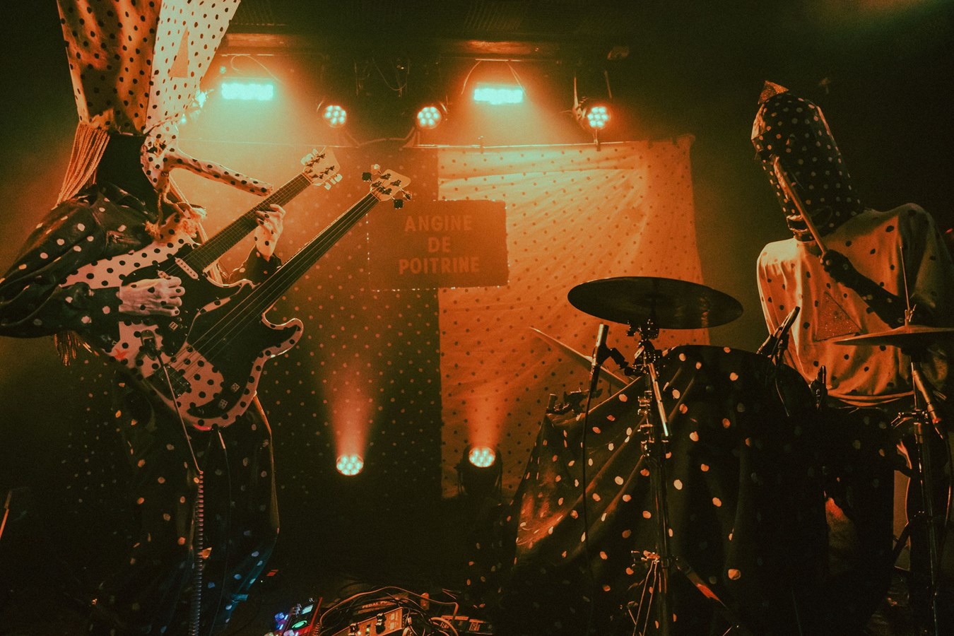 Mais aller voir un show d’Angine de Poitrine, c’est aussi se prêter à une expérience. Masqués et vêtus de costumes excentriques aux allures surnaturelles, Khn et Klec n’hésitent pas en mettent plein la vue à leurs spectateurs.