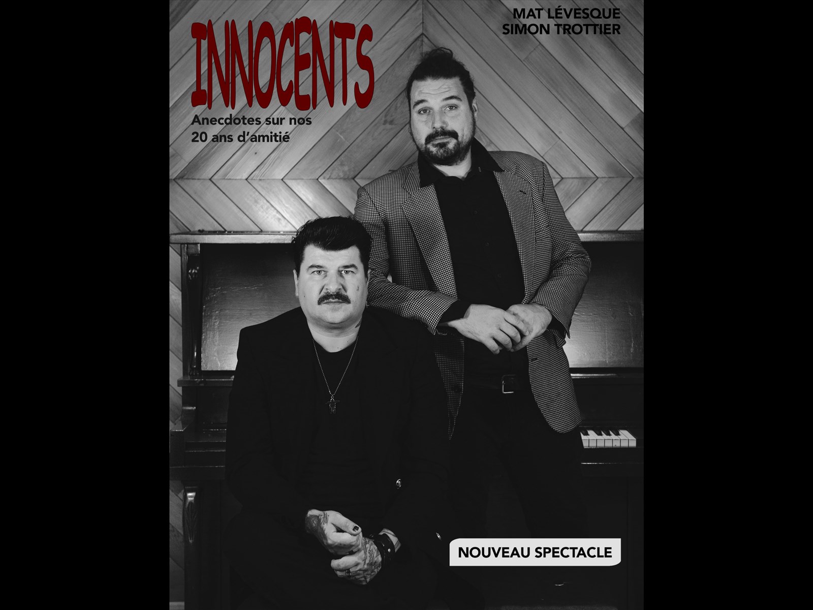 Vingt ans d’amitié, ça se fête! Les humoristes Simon Trottier et Mat Lévesque présentent en grande première Innocents, un spectacle inédit où leur complicité se raconte à travers des anecdotes hilarantes et des souvenirs partagés, le 31 janvier à la Salle Desjardins Maria-Chapdelaine.