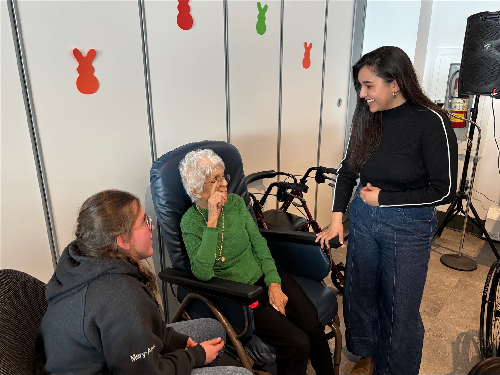 La rencontre a même été le théâtre de retrouvailles inattendues, comme ce fut le cas pour Marie-Ange Rousseau et Lucie Gagnée, âgée de 97 ans. En discutant, elles ont réalisé qu’elles avaient un lien de parenté et plusieurs points communs. « J’ai appris qu’elle aime beaucoup les animaux et qu’on aime pas mal les mêmes chansons de Claude Dubois », raconte la jeune fille.