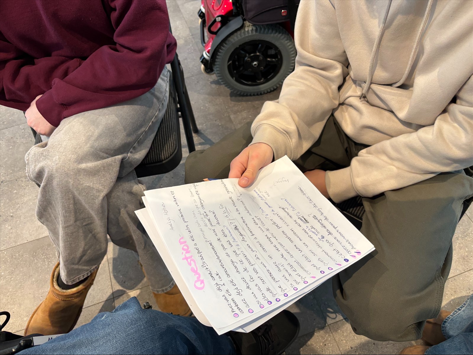 L’artiste dolmissoise s’est d’abord rendue en classe pour présenter son approche et discuter du projet. Les élèves ont ensuite participé à une activité d’échanges intergénérationnels à la résidence intermédiaire.
