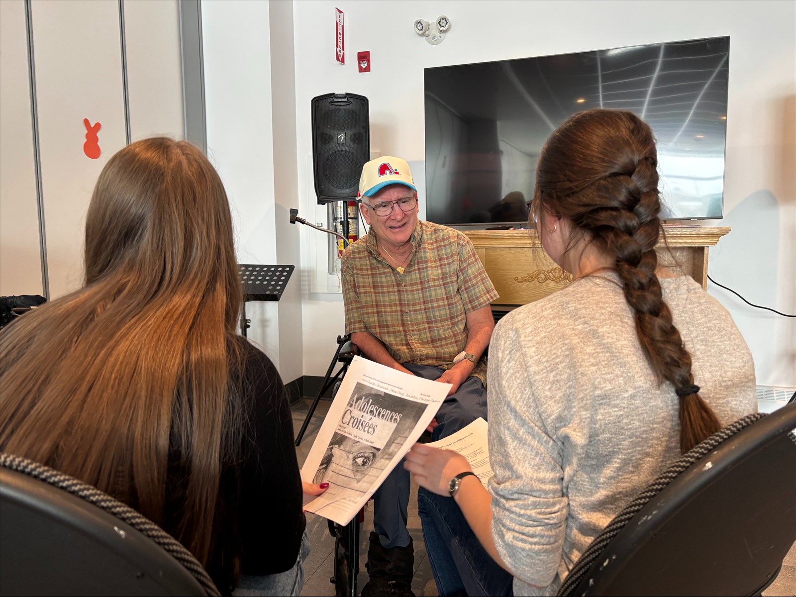 La fébrilité était palpable dans la pièce, lorsque les jeunes et les résidents se sont rencontrés pour la première fois. « C’est normal de se sentir un peu angoissé, a dit, d’entrée de jeu, l’artiste avec bienveillance. C’est nouveau. C’est différent. Ça arrive très rarement une belle rencontre comme vous êtes en train de vivre en ce moment. »